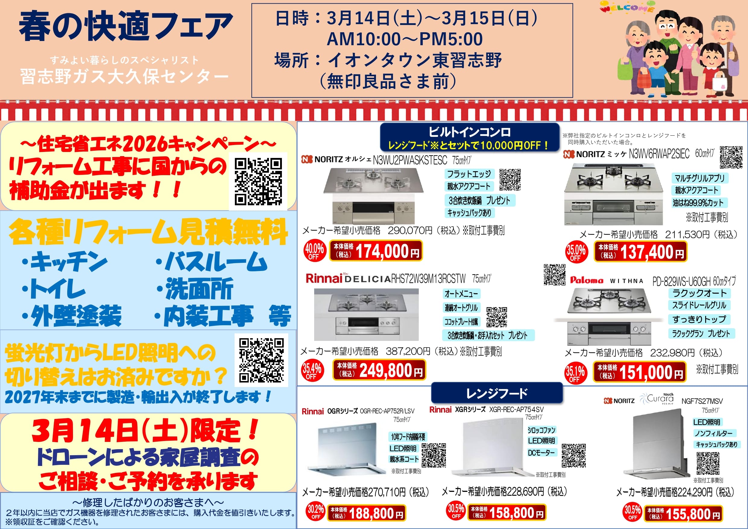 春の快適フェア 3/14(土)~3/15(日)開催!